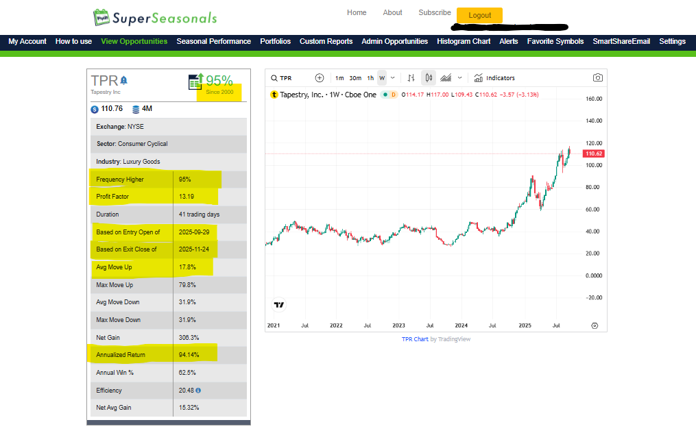 In today’s Super Seasonals: Trade of the Week we will look at Tapestry Inc. (TPR).