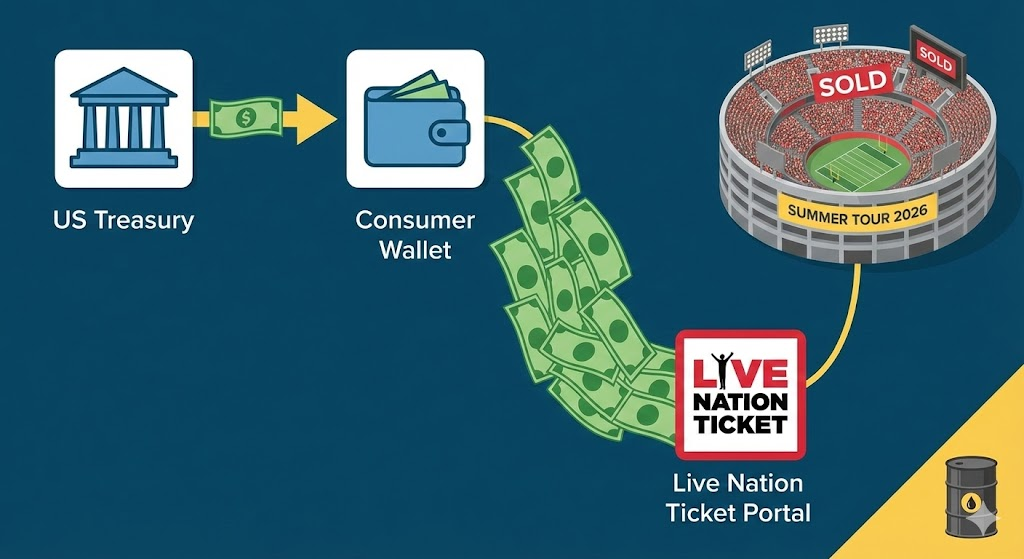 The 2026 Narrative: The macro environment is perfectly aligned for LYV. Crude Oil (WTI) is currently stabilized in the $55–$57 range, which lowers the logistical “tax” on massive global tours, protecting margins. As consumers receive their larger-than-average tax refunds this week, we expect a massive surge in front-loaded ticket sales, creating a “cash float” that institutions are currently front-running.